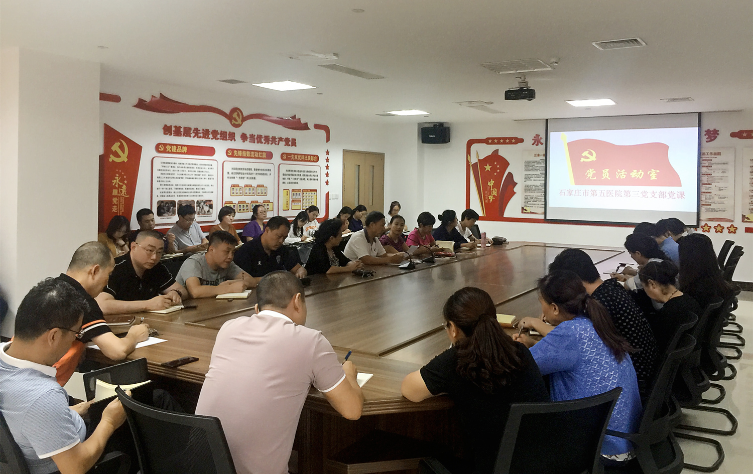 邢树吉同志带头发言,对医院三甲工作提出工作建议。随后,支部各位同志相继发言,对医院专科建设、人才培养、医疗服务、后勤保障等方面提出意见和建议。党委委员、副院长郑欢伟以“不忘初心,医者仁心”为主题,为支部党员讲党课。