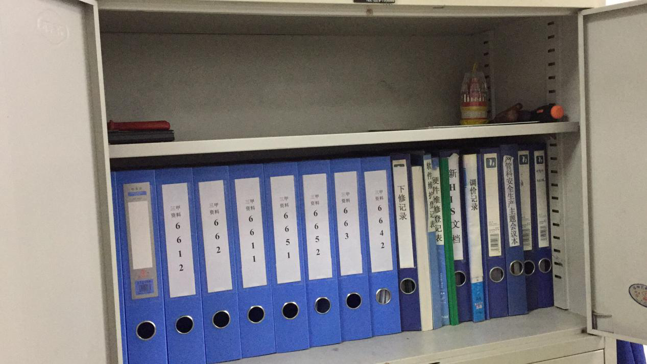 4、对科室公共区域进行整理,将科室文档资料、医院公用笔记本电脑、投影仪、相关备件等分类装柜,方便记录查找。