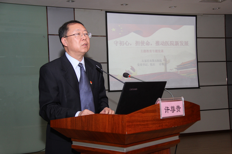 党委书记讲专题党课活动是这次“不忘初心、牢记使命”主题教育的一项内容。医院党委书记、院长许尊贵以“守初心,担使命,推动医院新发展”为题,从如何坚守初心、如何担当使命、如何在真抓实干中践行初心使命三个方面为大家进行讲解。党课紧扣主题教育、习近平新时代中国特色社会主义思想和党的十九报告等相关内容,结合医院创建 “三甲”、提升服务等实际工作,理论深厚、内容丰富。