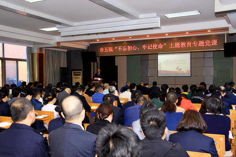为扎实推进“不忘初心、牢记使命”主题教育的深入开展,10月23日,医院党委书记、院长许尊贵为领导班子、中层干部和全体党员200余人上了一堂生动的专题党课。市委主题教育第十五巡回指导组副组长马宏宇到会场指导。