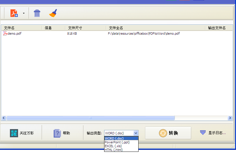 界面非常简洁,打开需要转换的PDF,选择需要的输出类型,点击转换按钮即可。