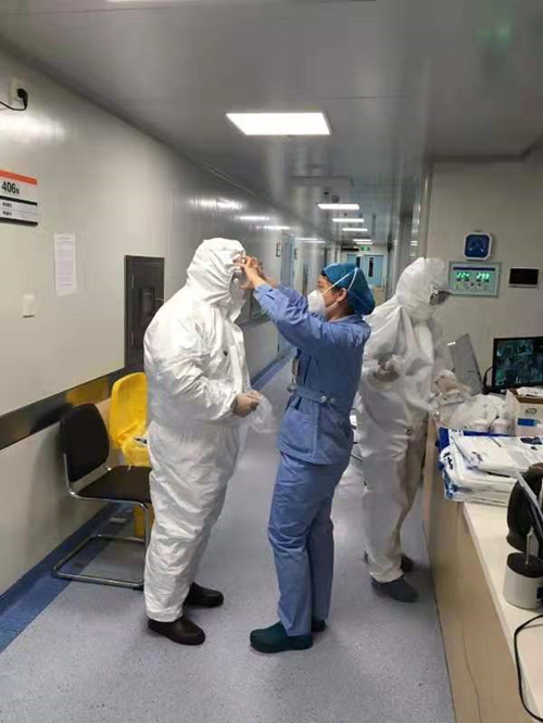 面对突然增多的患者,ICU医生人手不够,急诊、感染五科、感染六科、感染七科的医生纷纷请战到一线,1月28日,外院援助我院的专家王生池、高芳、沈晓辉等也来到隔离病区,充实了ICU医疗团队。