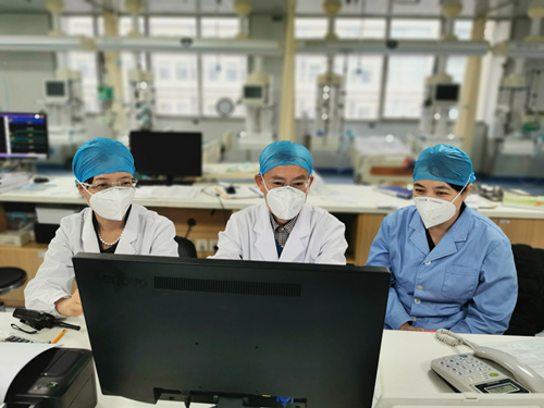 1月28日凌晨3点,远程会诊室仍然灯火通明,党委书记、院长许尊贵,副院长郑欢伟、王瑜玲与省、市专家正在通过远程会诊为一位危重患者进行救治方案的研判,专家们从上午开始一遍一遍改进治疗方案后,患者病情仍不见好转。晚上6点,大家连饭都顾不上吃,继续进行省市专家远程会诊,中西医结合全力进行救治,直到患者症状平稳,大家才松了一口气。