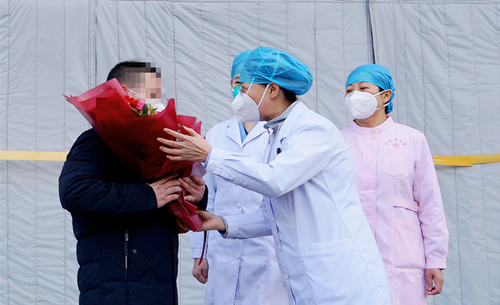 该患者为石家庄市赵县人,34 岁,在武汉市江汉区华南水果市场工作。于1月21日由武汉返回赵县,1月24日到该县人民医院发热门诊治疗,根据患者流行病学史和临床表现,1月27日,由120送入市五院ICU,经过抗感染、抗病毒、提高免疫力等多种方法对症治疗,并运用中医中药疗法,有效促进了其顺利康复。目前,患者体温正常5天,肺部CT病变明显好转,经两次核酸检查结果均为阴性。经过省、市专家组评估,符合国家卫生健康委新型冠状病毒感染的肺炎确诊病例出院标准。