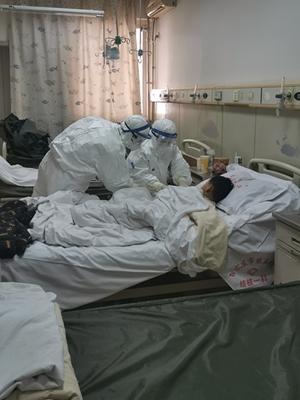 1月23日,我科收治了第一例疑似病例。当天早上刚刚交完班,医生和护士正在讨论防护问题,就接到电话,两位疑似患者已由疾控中心送到了电梯门口等待交接。此时,大家心里紧绷的神经又上了一道弦,谁都没有接触过疑似患者,疾病的传染性到底有多强,我们的防护到底能起多大的作用?“我去接吧!”顾不上想那么多,我主动提出进隔离病区,“我也去”“我去!”大家争先恐后,当时的情形让人泪目,“还是我去吧!”最终决定我和王淑荣大夫进入隔离病区。我们立即手卫生,准备穿隔离服,像是一种神圣的仪式,在大家的叮嘱和注视中走进了隔离病区。事后,两位疑似患者中有一位为确诊病例,有人问我“你当时那么主动,不怕吗?”其实说不害怕都是假的,进入隔离病区时,内心也是忐忑的,可身为医护人员,冲在疫情一线是我们的职责所在,身为党员,这更是我的使命所在!