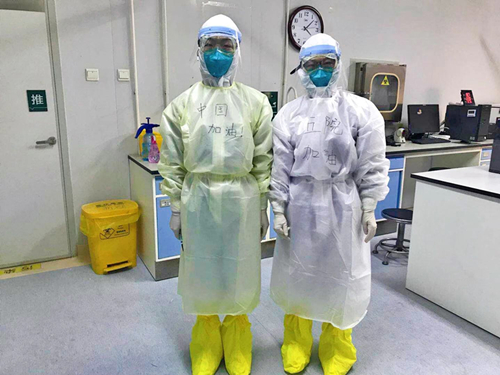 疫情就是命令。作为一名检验人,科室全体人员向院领导提出申请自愿加入到医院抗击疫情战斗中去,服从安排,听从指挥,24小时待命,义无反顾。检验岗位需要24小时值守,并随时去发热门诊取标本。临近农历新年,检验科已有部分员工回家探亲,人手紧张。当主任刘玉珍发布取消休假全员到岗的消息时,大家纷纷回到了自己的工作岗位。副院长戴二黑和刘玉珍统一安排,及时联系并购入新冠病毒核酸的检测试剂,用于新冠肺炎的确诊检测。刘玉珍和主任检验师高会霞加班加点制定并完善生物安全流程,给全科人员进行培训。保证实验检测准确性的同时,做好生物安全的防护措施。