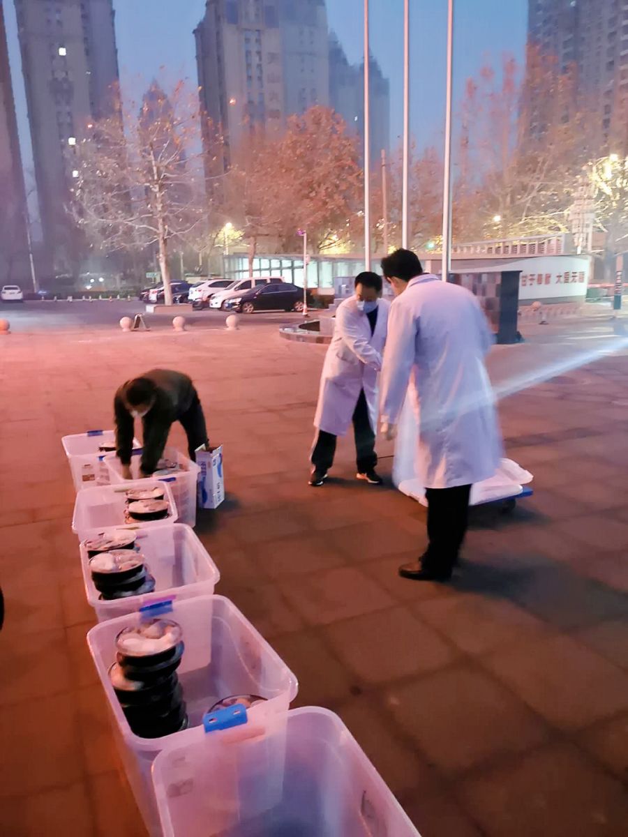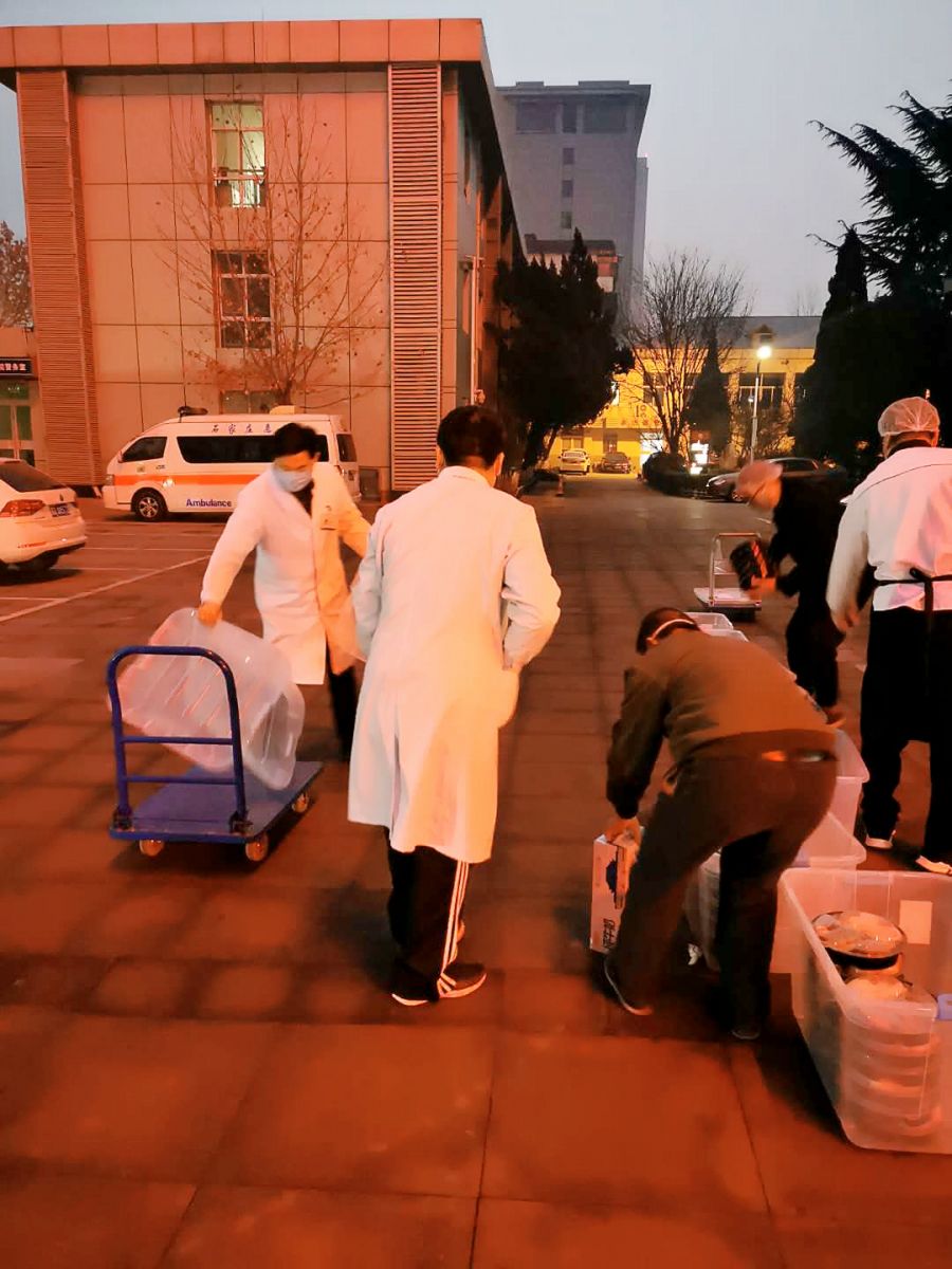 “开饭啦”伴随着声声呼喊,在夜色朦胧中总务科党员送餐“小分队”开启了一天的工作。为了不影响一线工作秩序,使他们能在交班之前吃上早餐,天还未亮,送餐“小分队”就已经行进在了送餐的路上……