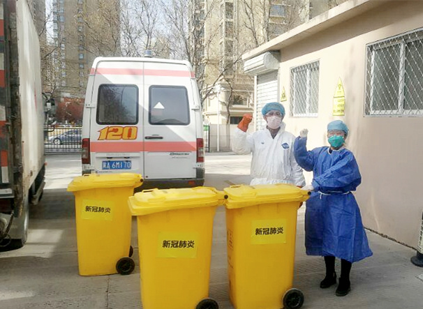 在副院长路毓峰的带领下,总务科根据感染防控需求,迅速设置了20个新冠肺炎专用医废暂存箱,分区放置;建立了120车辆末端消毒工作场地;为医废转运人员配备了防护用具,并按要求进行消杀。总务科医疗废物管理员章锐带领四名医废转运人员及时收集,每天指定专人收取新冠肺炎医废,与ICU及各发热病区建立专线联系,实现桶桶转运,方便了临床科室,提高了工作效率。