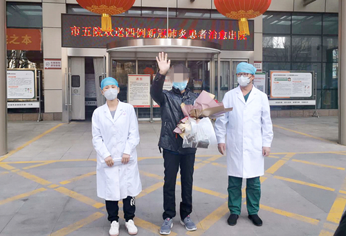 患者刘某,40岁,现住新华区,与湖北来石人员有密切接触史。于2月4日入院,后经核酸检测确诊为新冠肺炎,市五院发热一病区医护团队为其进行抗病毒、中西医等治疗取得良好成效。患者体温正常19天,无咳嗽、胸闷等症状,连续两天核酸检测转阴,符合出院标准。