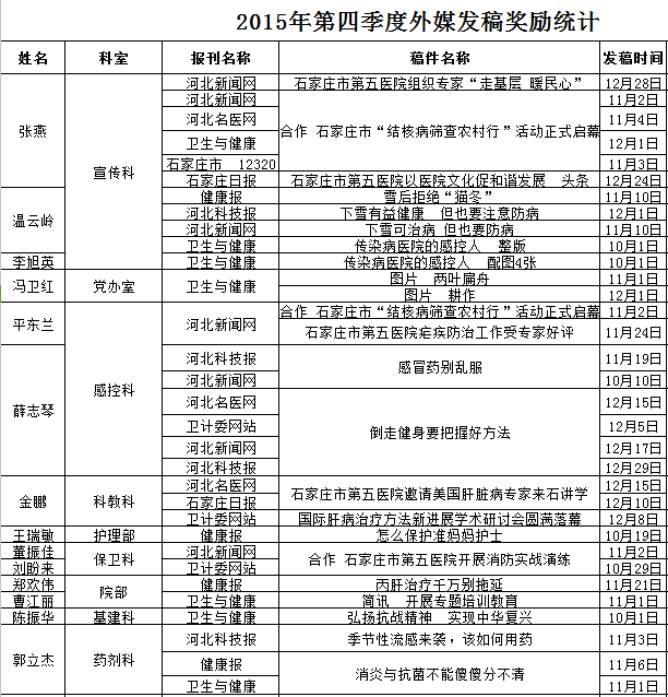 【新闻稿件刊登情况2015年第四季度】
