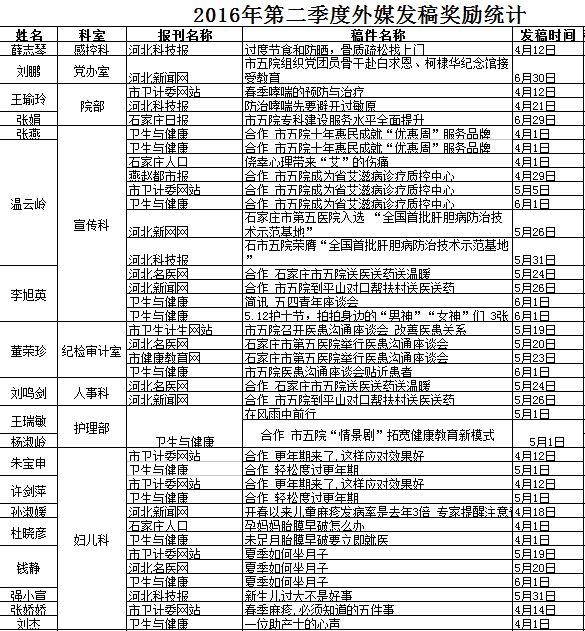 【新闻稿件刊登情况2016年第二季度】