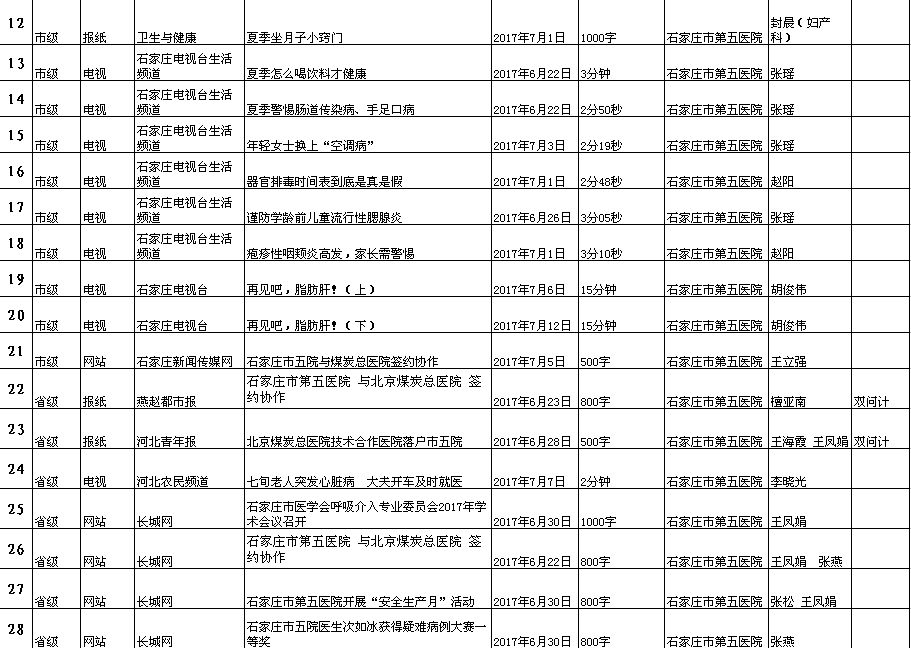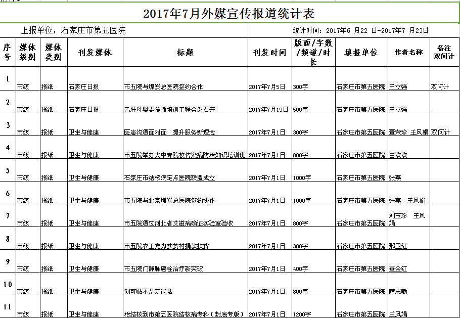 - 下一篇: 【2017年度卫生工作媒体刊稿统计表】