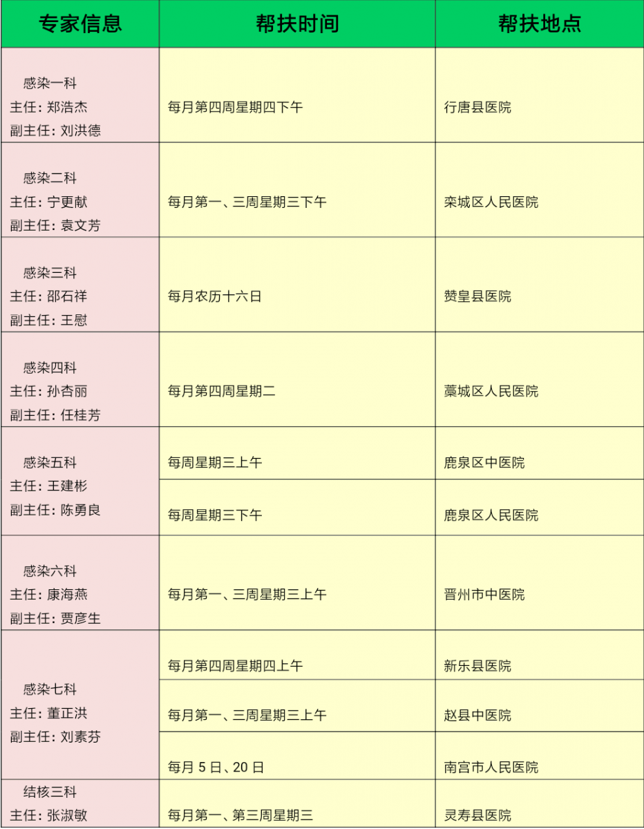 石家庄市第五医院 医联体专家基层医疗机构坐诊安排情况汇总